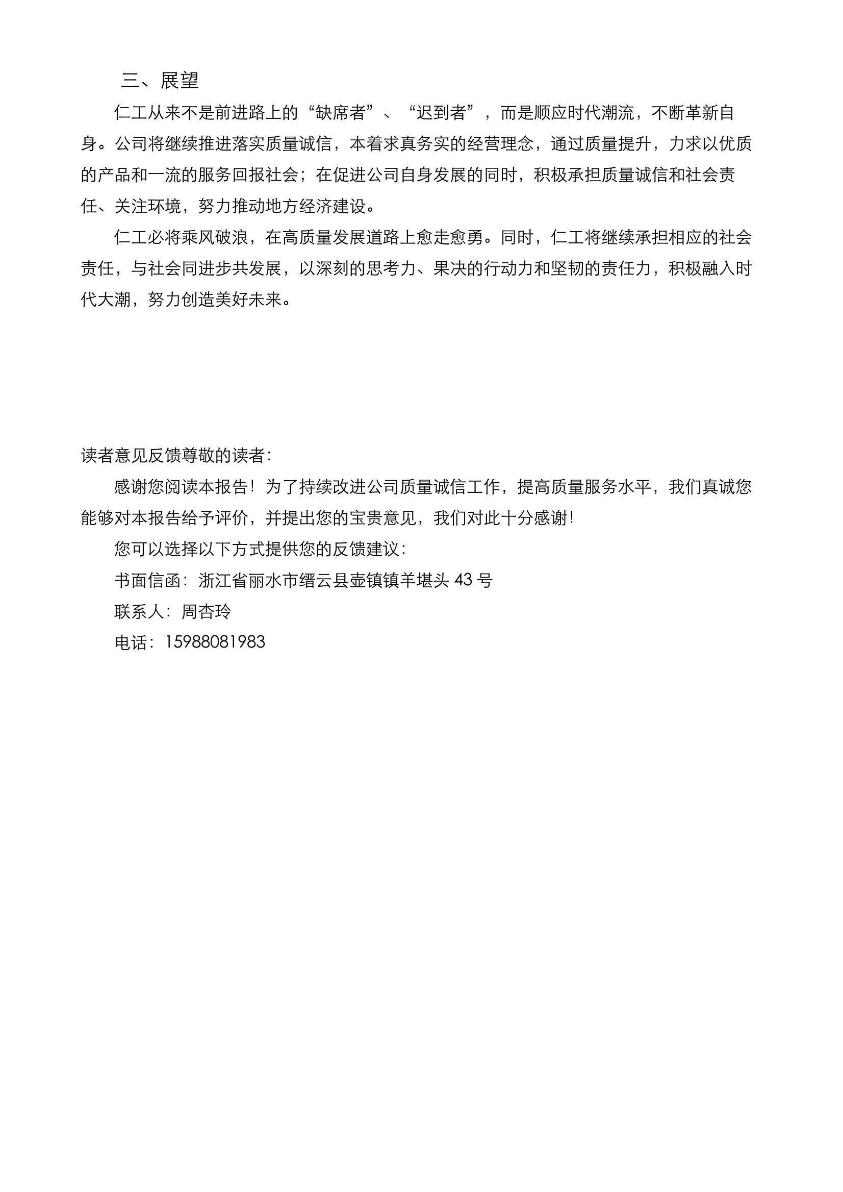 质量诚信报告